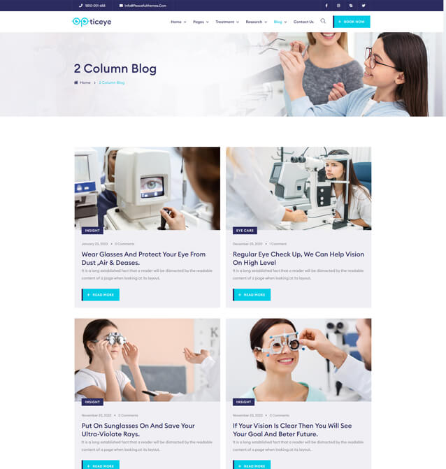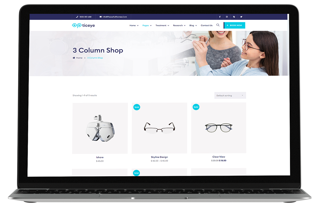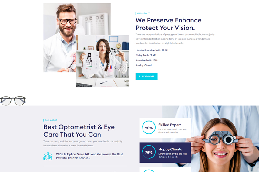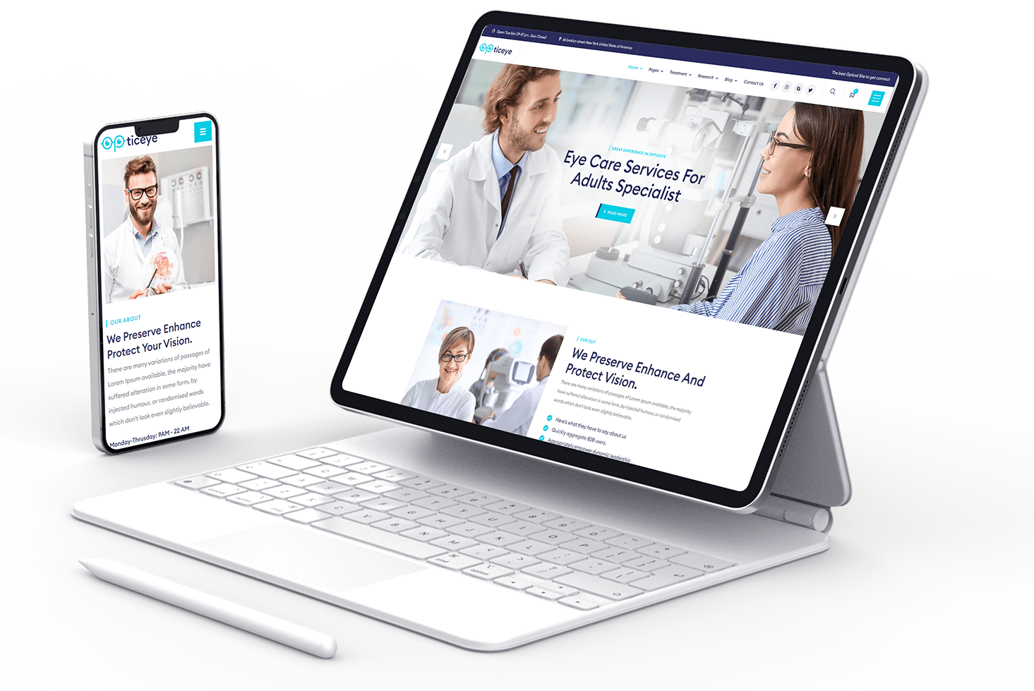 The responsive design appears as a way to provide equal access to information regardless of device. Opticeye is fully responsive and will adapt itself to any mobile or tablet device.